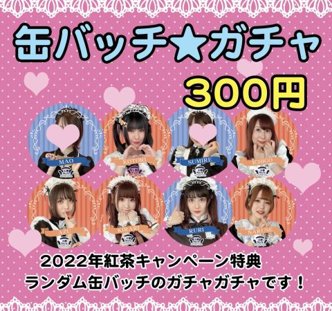 『メイド缶バッチガチャガチャ』 本日より稼働しました♪ 2022年メイドオリジナルティー特典の缶バッチが入ったガチャガチャです。 逃してしまった方は勿論、すでにお持ちの方もコンプリート目指してぜひお屋敷で回してみてください🎡 https://t.co/uP3jd1K0qQ