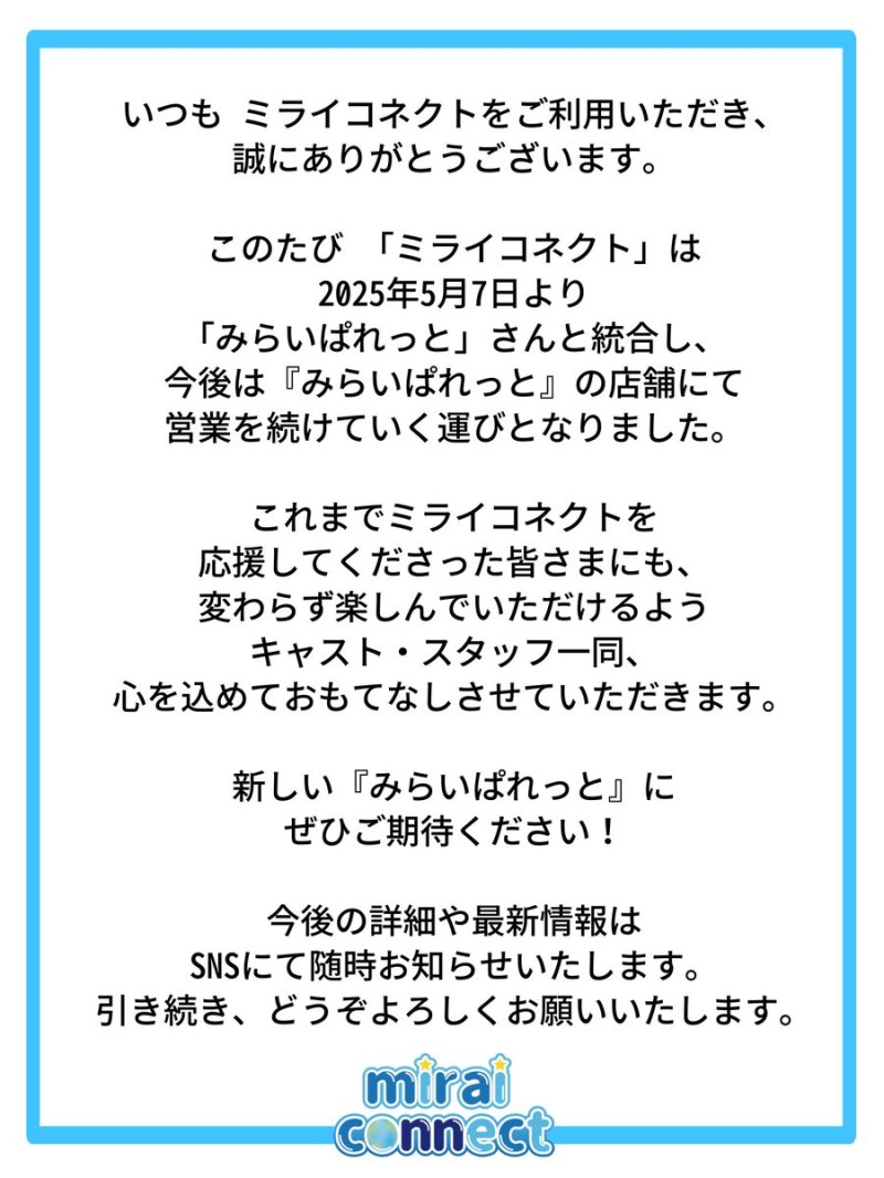 【ミライコネクト→みらいぱれっとへ統合のお知らせ】 https://t.co/cOIPHsOTG5